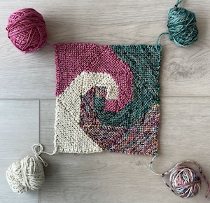 By the end of the class, students will leave with a deeper understanding of geometric construction in knitting, new tools for creative design, and the knowledge to make other geometric constructions, including the full Currents blanket.