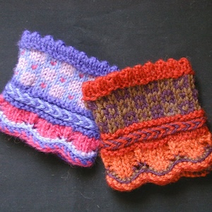 Using wristers as a template, some of the beautiful knitting methods of Latvia will be studied in this class. Knit one of a pair of wristers to learn the following techniques which can be applied to mitten cuffs, sock tops or sleeves: a scalloped cuff, the herringbone braid and many subtle and beautiful variations of the half-braid. A traditional motif is incorporated in the main part of the wrister, as well as a picot edge at the end.